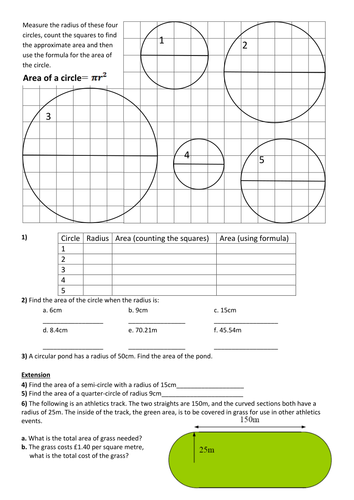 Grade 6 Geometry Worksheets: Area of a circle - K5 Learning Below are six versions of our grade 6 math worksheet on finding the area of a circle when given the radius or diameter; standard units of measurement are used. These worksheets are pdf files. Worksheet #1 Worksheet #2 Worksheet #3 Worksheet #4 Worksheet #5 Worksheet #6 5 More Similar: Area and circumference of a circle Circumference of a circle