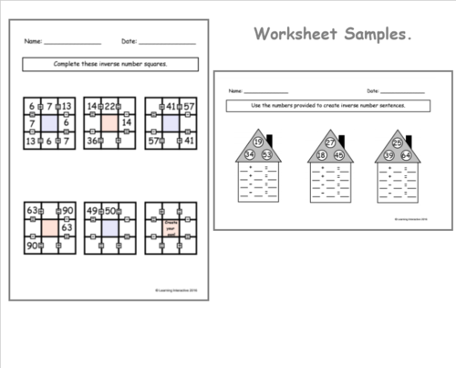 Free math worksheets inverse operations. inverse operations multiplication and division Inverse Operations - Multiplication & Division Sums. by. Teaching Resources 4 U. $3.00. Zip. Inverse operations - multiplication and division sums2-page bookletFully editableActivity 1: Write 4 sums (2 multiplication and 2 division sums) using the numbers shown.Activity 2: Create 4 sums using your own numbers. Search Printable Addition and Inverse Operation Worksheets Search Printable Addition and Inverse Operation Worksheets Entire Library Printable Worksheets Games Guided Lessons Lesson Plans 27 filtered results Addition and Inverse Operations Sort by Fact Family Houses Worksheet Build Your Own Number Bond Worksheet Number Bonds All Around Worksheet Additive Inverse Practice Worksheet Search Printable Subtraction and Inverse Operation Worksheets Worksheet Inverse Operations Practice Worksheet Make Your Own Fact Family Triangles Worksheet Stamp Subtraction Worksheet Find the Missing Fact Family Number Worksheet Colorful Christmas Math #16 Worksheet Fact Family Dice Worksheet Fact Family Game: Hunting for Fact Families Worksheet Domino Number Sentence Worksheet Inverse Operations: Multiplication Worksheets | 99Worksheets Free Inverse Operations: Multiplication printable Math worksheets for 3rd Grade students. Click on the image to view or download the PDF version. Related posts: More Mixed Minute Math. Step By Step: Two-Digit Multiplication. Single And Double-Digit Addition Subtraction Assessment.