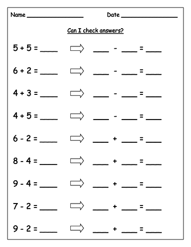 Addition and Subtraction Inverse Operations worksheets - Free Samples ... Each specially designed timed worksheet for each topics (addition, subtraction, multiplication, division, fraction, decimal, integer, and equation), allows students to start problem solving at their own ability level. Students will gradually move step-by-step until they master every math concept. Timed Addition Worksheets Free math worksheets for basic operations Free math worksheets for basic operations This worksheet generator allows you to make worksheets for addition, subtraction, division, and multiplication of whole numbers and integers, including both horizontal and vertical forms (long division etc.), and simple equations with variables. You can make worksheets for... Inverse Operations - Multiplication | Inverse operations ... - Pinterest Feb 6, 2018 - Inverse Operations - Multiplication free online worksheet for kids. More workshests available in the same category and grade. Feb 6, 2018 - Inverse Operations - Multiplication free online worksheet for kids. ... 3rd Grade Math Worksheets. Teaching Techniques. Classroom Setting. Decimal. Inverse Functions Worksheets | Free Online Math Worksheet PDFs Inverse functions worksheets help students to understand the inverse function that undoes the effect of another function. For example, the inverse function of the formula that converts Celsius temperature to Fahrenheit temperature is the formula that converts Fahrenheit to Celsius.